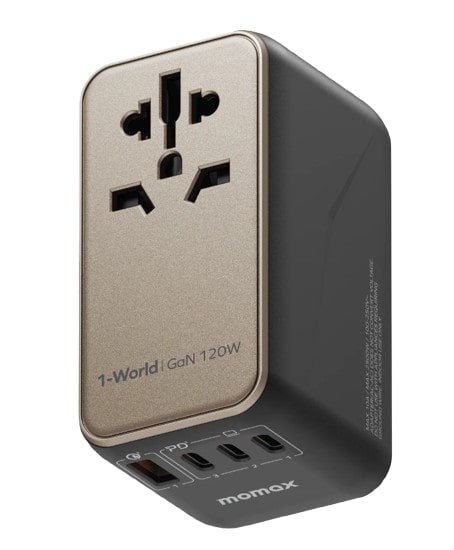 The Momax 1-World 120W GaN Universal Travel Charger (Model: UA15) is a compact and versatile charging solution designed for travelers. Equipped with 1 USB-A and 3 USB-C ports, it allows simultaneous charging of up to four devices. Notably, the USB-C1 or C2 ports can independently deliver up to 100W Power Delivery (PD), making it capable of fully charging devices like MacBooks and Nintendo Switch consoles.