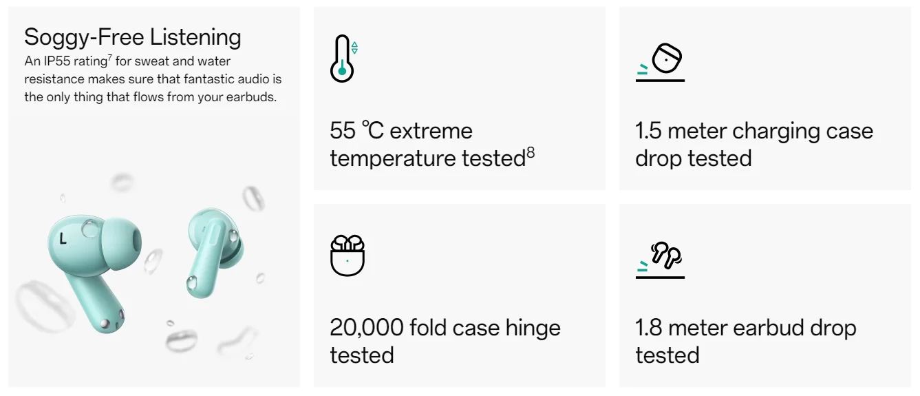 • Battery: 58 mAh (Buds), 440 mAh (Case)