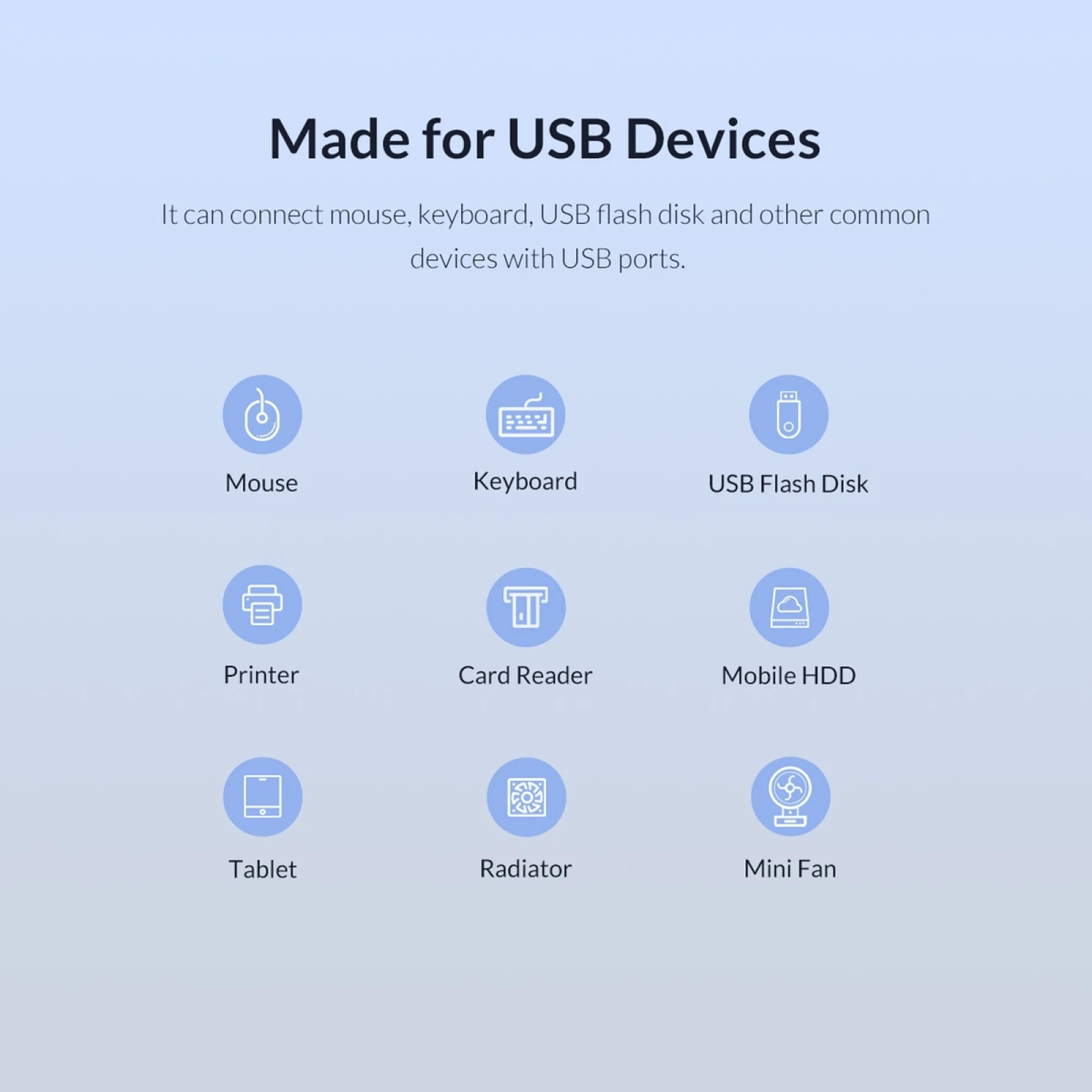 • Suitable for connecting mouse, keyboard, smartphone, tablet, USB, printer, etc.