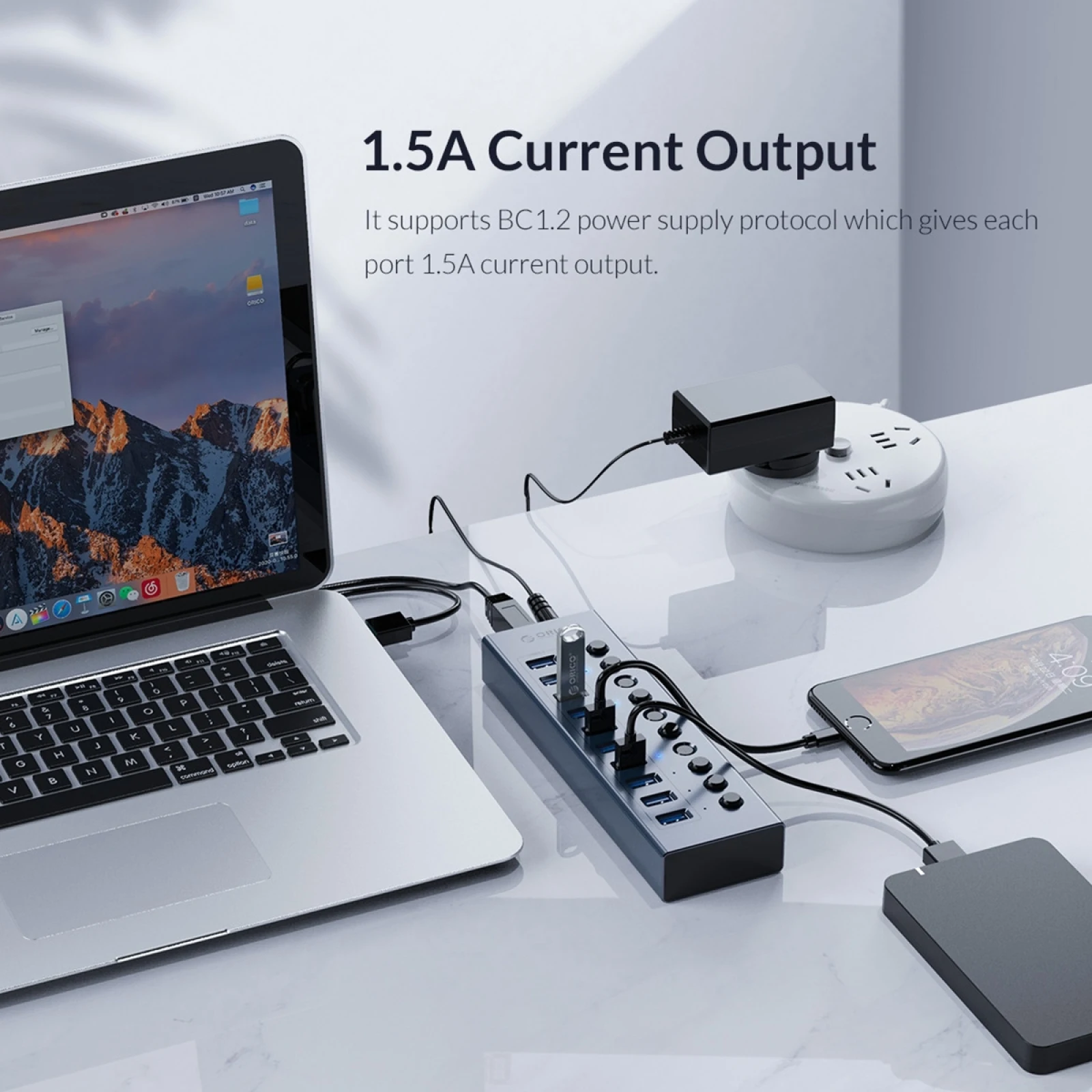 ORICO 7-Port USB 3.0 HUB with Individual Keys (BT2U3-7AB-GY-BP)