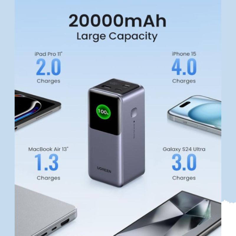 - Capacity: 20,000mAh (72Wh)