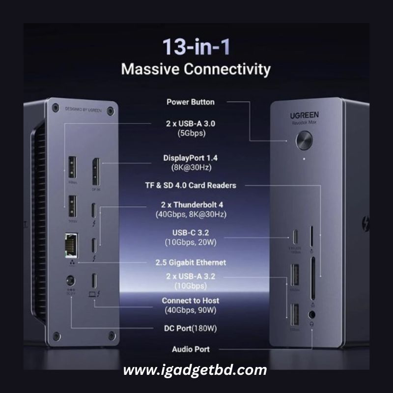 The latest price of UGREEN (25054EU) Revodok Max 213 13-in-1 Docking Station #U710 in Bangladesh is ৳30,999.00 You can buy the UGREEN (25054EU) Revodok Max 213 13-in-1 Docking Station #U710 at best price from our website.