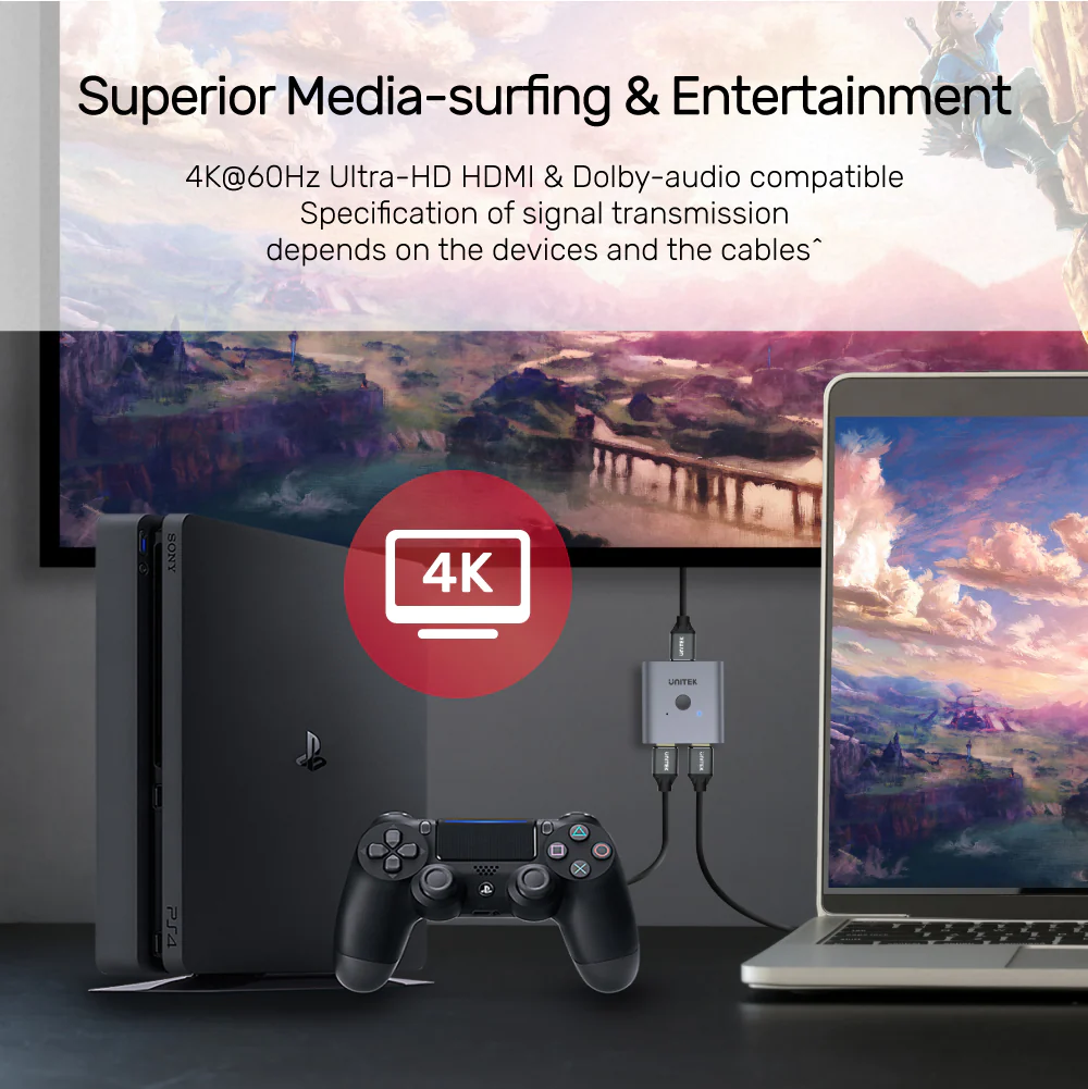 UNITEK V1127A 4K Aluminium HDMI 2.0 Switch 2-To-1 Bi-Directional