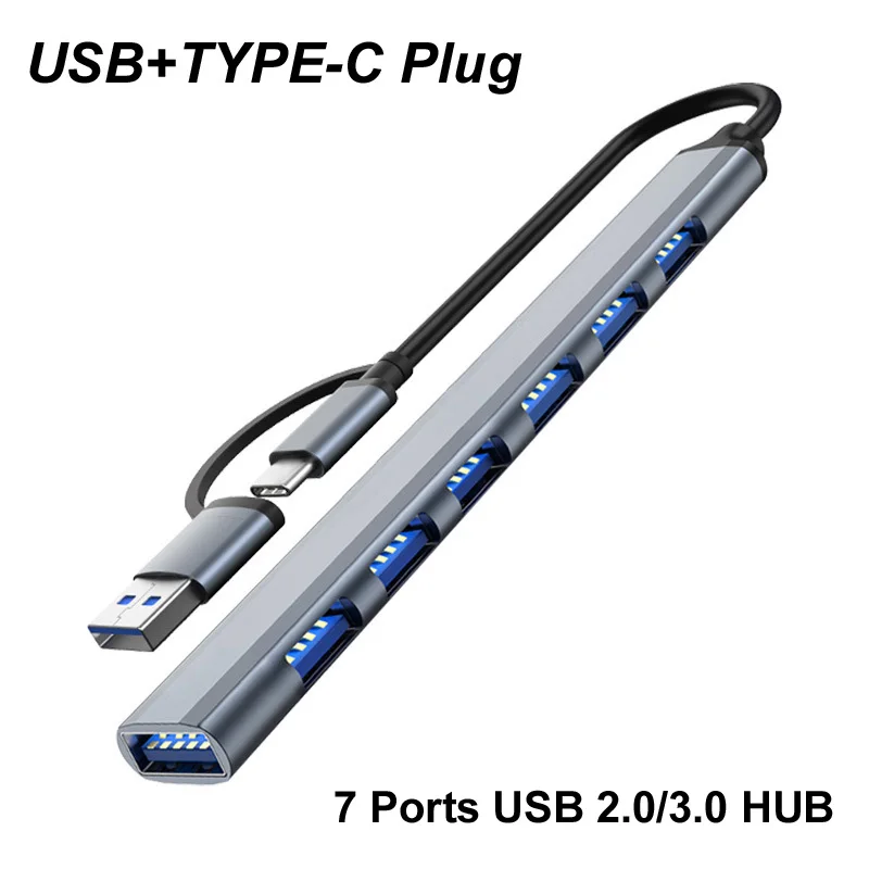 • Aluminum USB 3.0/3.1 OTG Splitter Adapter 7 Ports Mobile HDD Card Reader for Laptops